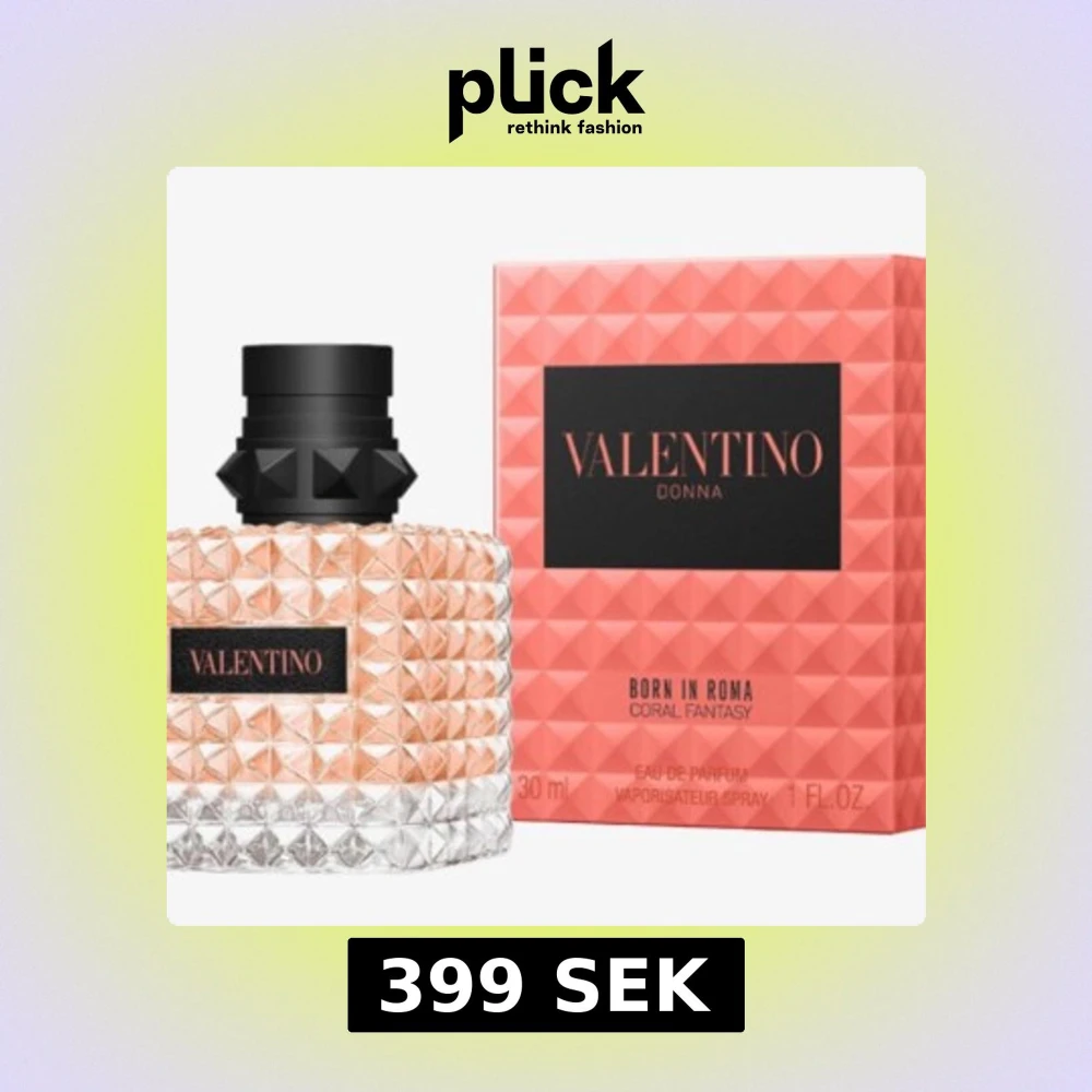 Valentino Donna Born In Roma Coral Fantasy EdP, 30 ml. Flaskan Àr lyxigt mönstrad i glas med korallrosa och transparent design samt svart, nitat lock. Förpackningen Àr korallfÀrgad med svart etikett och roséguldfÀrgad text. Perfekt för dig som gillar exklusiva dofter.