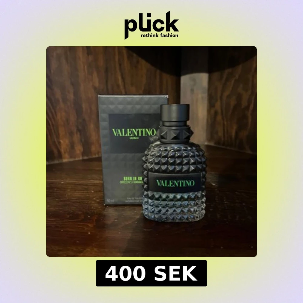 Upptäck Valentino Uomo Born in Roma Green Stravaganza, en elegant parfym i en stilren flaska med nitar och svart lock. Doften är en del av Born in Roma-kollektionen och kommer i en 50 ml flaska men med 25 ml kvar. Perfekt för den som söker en sofistikerad och modern doftupplevelse. Gör inga byten