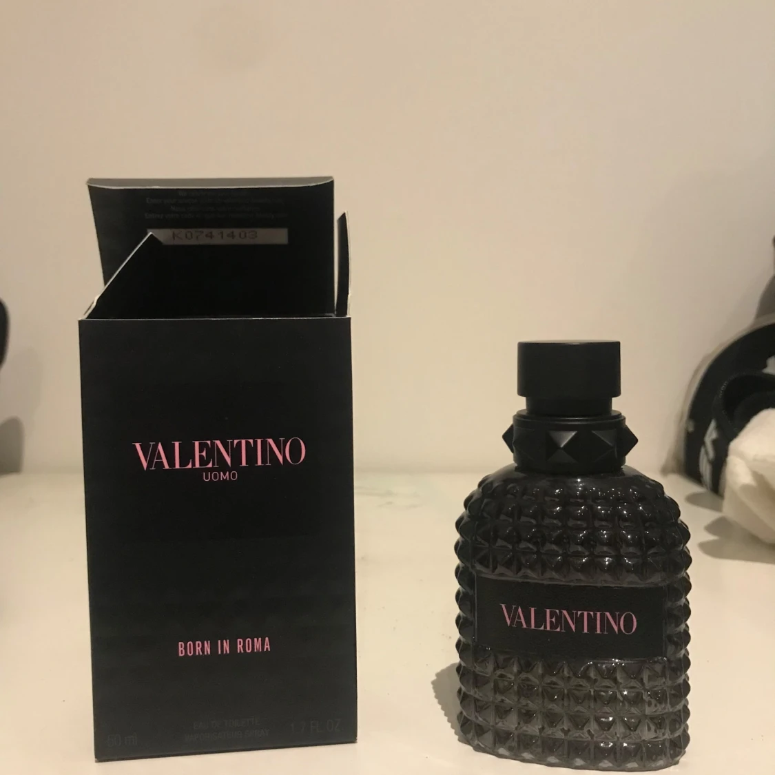 Stilren och modern parfym från Valentino, Uomo Born In Roma. Flaskan rymmer 50 ml men är ungefär 35 ml kvar i.
