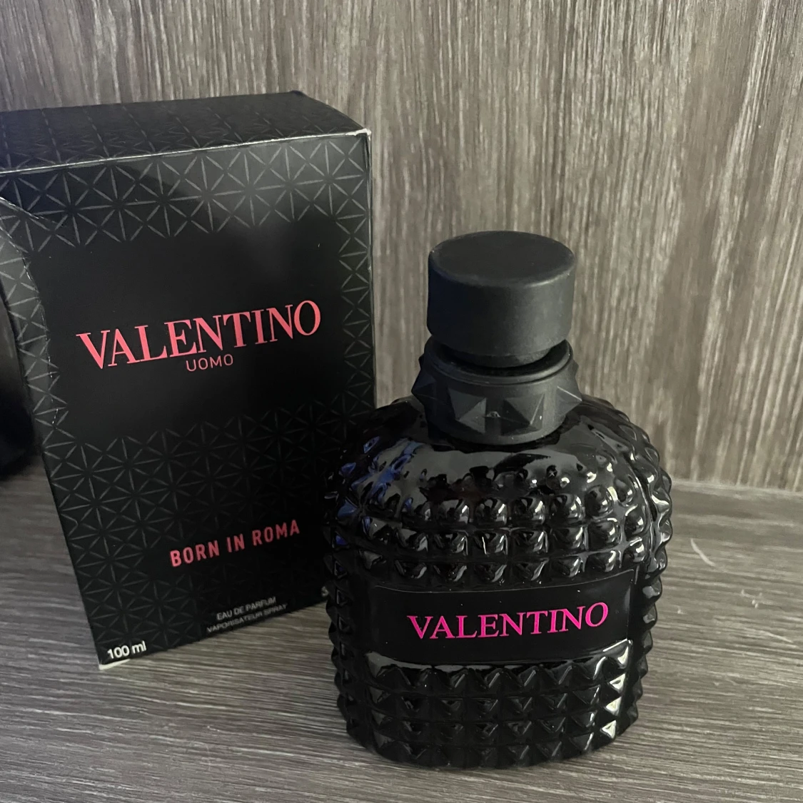 En lyxig herrparfym från Valentino i en svart, mönstrad glasflaska med rosa text. Flaskan rymmer 100 ml och doften är modern och elegant. Endast använd 2-3 sprut