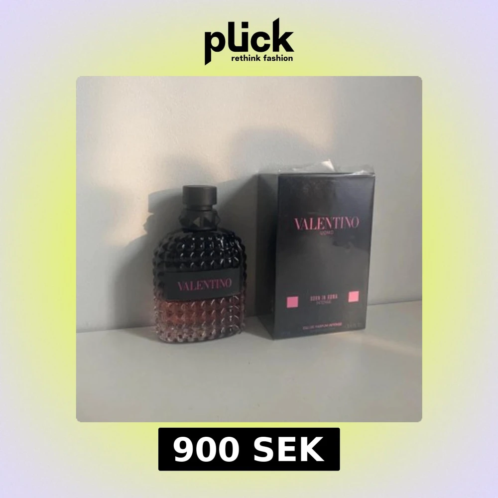 Bevis på att den är äkta finns🧾💛Exklusiv parfym från Valentino, Uomo Born In Roma Intense. Flaskan är mörk med nitar och övergår från svart till mörkrosa. Snygg design med svart och rosa detaljer. Kommer med originalkartong i svart med rosa text. Eau de Parfum Intense, 100 ml.