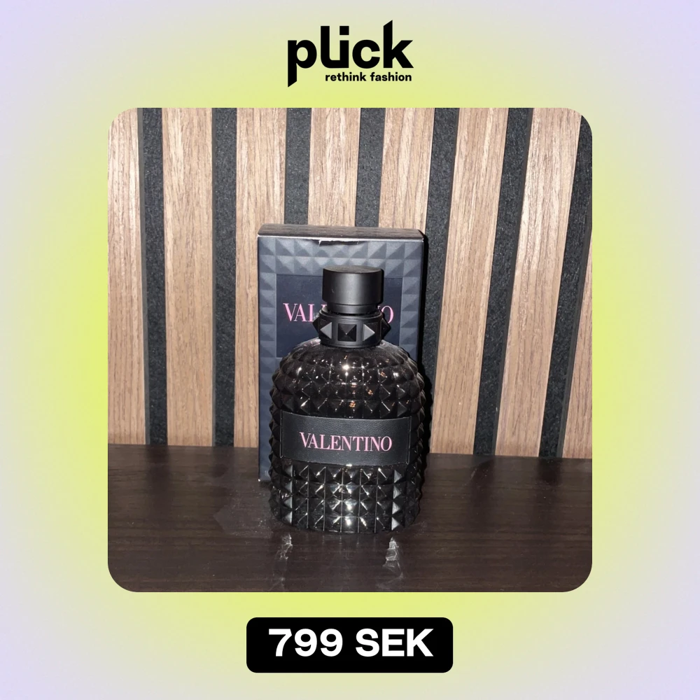 Säljer en lyxig parfymflaska från Valentino, modellen Uomo Born in Roma. Flaskan är svart med ett coolt nitat mönster och har en elegant svart kork. Perfekt för den som vill ha en stilren och modern doft på hyllan. Kommer i originalförpackning. Den var från början 100 ml men det finns ungefär 87-92 ml kvar✅ Nypris: 1300 mitt pris: 799