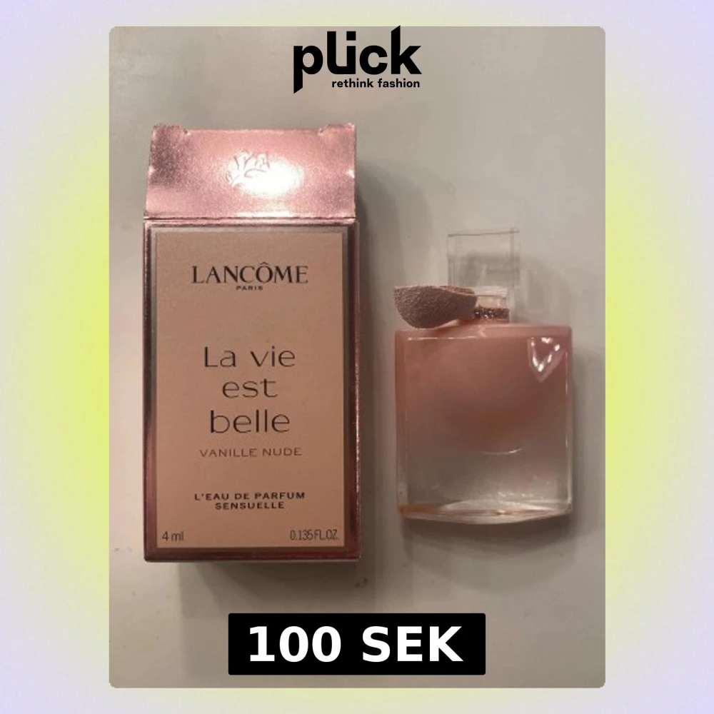 Lancôme La Vie Est Belle Vanille Nude är en elegant parfym i en liten, fyrkantig glasflaska med ljusrosa detaljer och matchande kartong. Doften är sensuell och har en tydlig vaniljton. Flaskan rymmer 4 ml och har en stilren, modern design. Perfekt att ha i väskan!💕