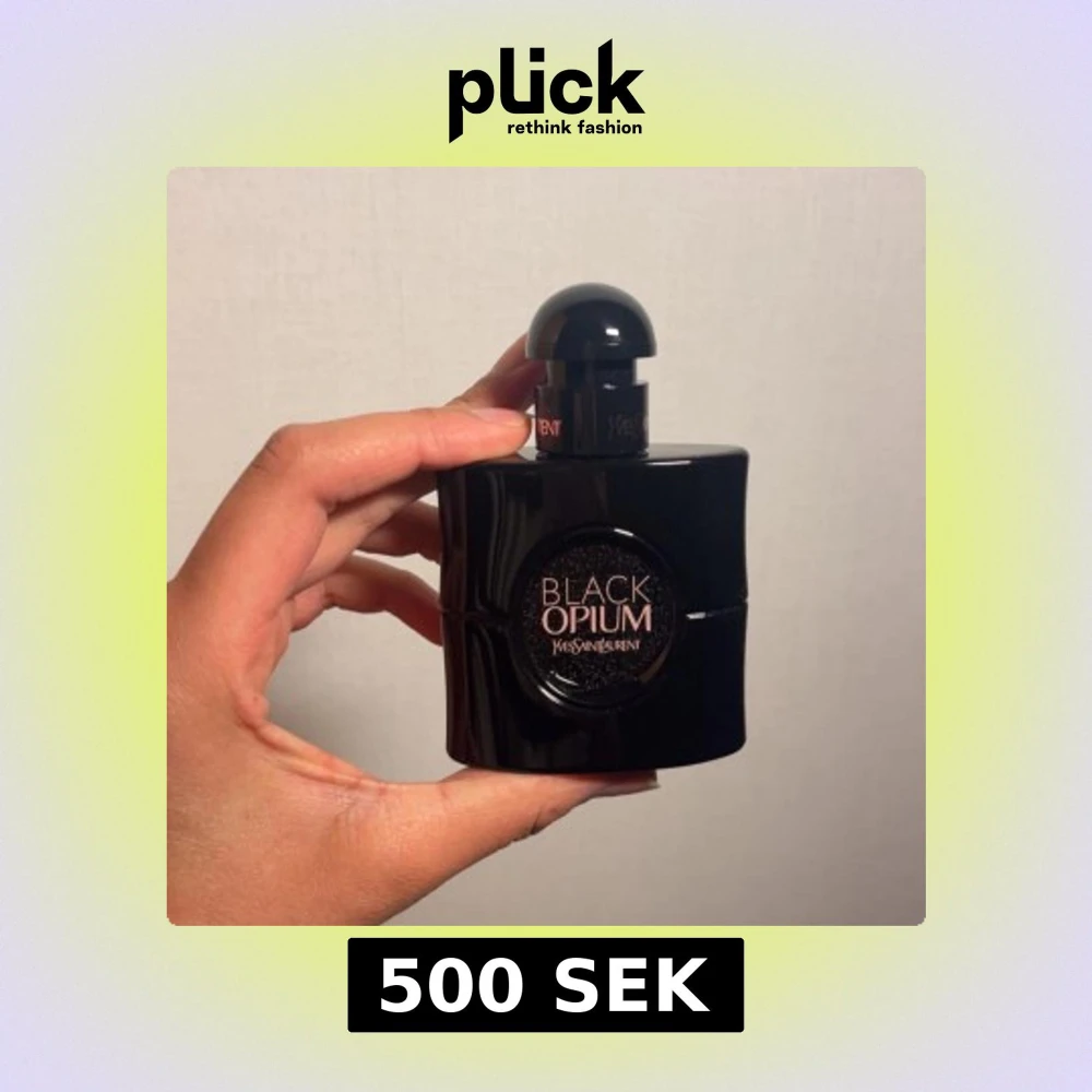 Säljer en flaska Black Opium Le Parfum från Yves Saint Laurent. Flaskan är elegant och svart med en glittrande yta och rundad form. Parfymen kommer i en 30 ml flaska och är känd för sin djärva och sensuella doft, använd endast en gång