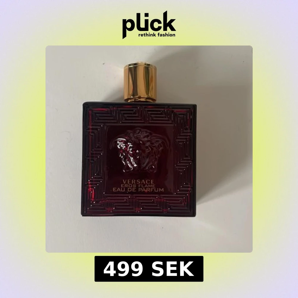 Versace Eros Flame Eau de Parfum, 100 ml. Tillverkad i Italien. En ikonisk flaska som sticker ut och passar dig som vill ha något extra i din samling. Ungefär 85 ml kvar