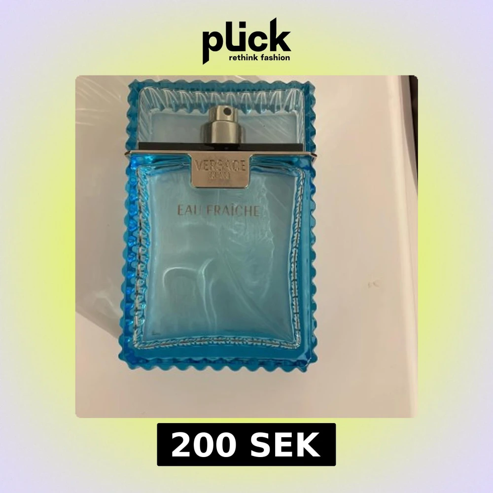 Säljer en fräsch och stilren Versace Man Eau Fraîche parfym. Flaskan är i en klarblå färg. Perfekt för den som vill ha en uppfriskande doft. Den luktar väldigt fräsch hela flaskan e 100 ml och nu är det ungefär hälften kvar skriv för mer frågor.