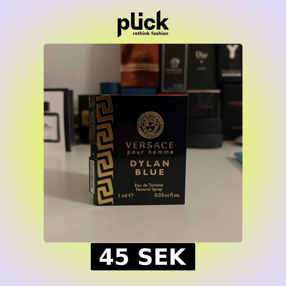 Versace pour homme Dylan Blue, 1 ml Eau de Toilette. Innehåller bl.a. bergamott, grapefrukt, fikonblad, svartpeppar, patchouli och tonkaböna. Tillverkad i Italien. Perfekt storlek för att testa eller ha med på språng.