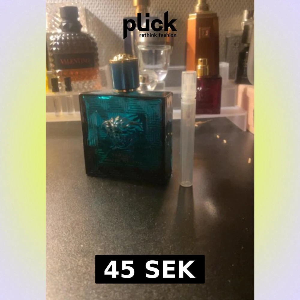 Versace Eros Eau de Toilette i en stilren blå flaska med ikonisk Medusa-detalj. Perfekt för dig som vill sticka ut. Medföljer en praktisk provflaska för enkel testning eller att ta med på språng.