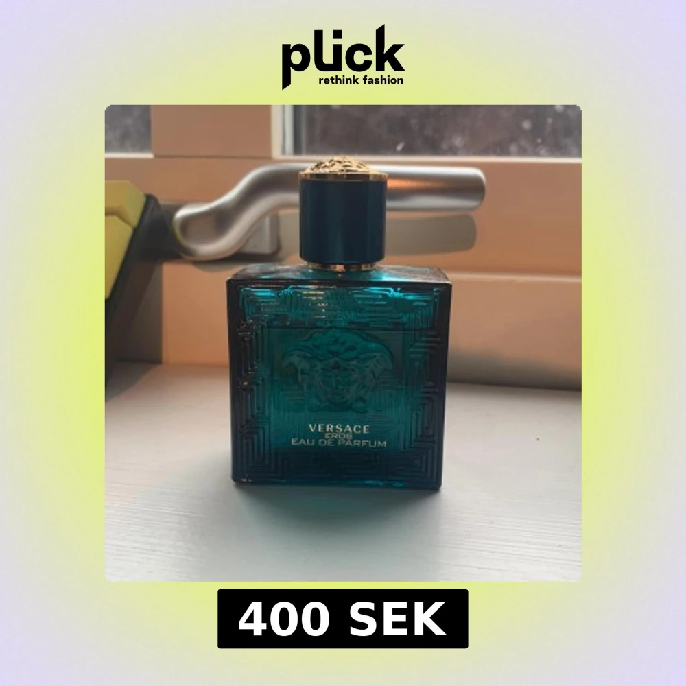 Säljer en lyxig herrparfym, Versace Eros Eau de Parfum. Gissar på att det är typ 42 ml kvar. Hör gärna byte. Flaskan är fyrkantig i turkost glas med guldiga detaljer och ett elegant mönster samt Medusa-huvudet på framsidan. Perfekt för dig som gillar exklusiva dofter. Box medföljer