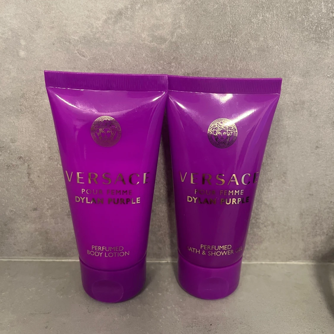 Två produkter från Versace Pour Femme Dylan Purple: en perfumed body lotion och en perfumed bath & shower gel. Perfekt för dig som vill ha en lyxig känsla i din dagliga rutin. Mer än hälften kvar i båda!