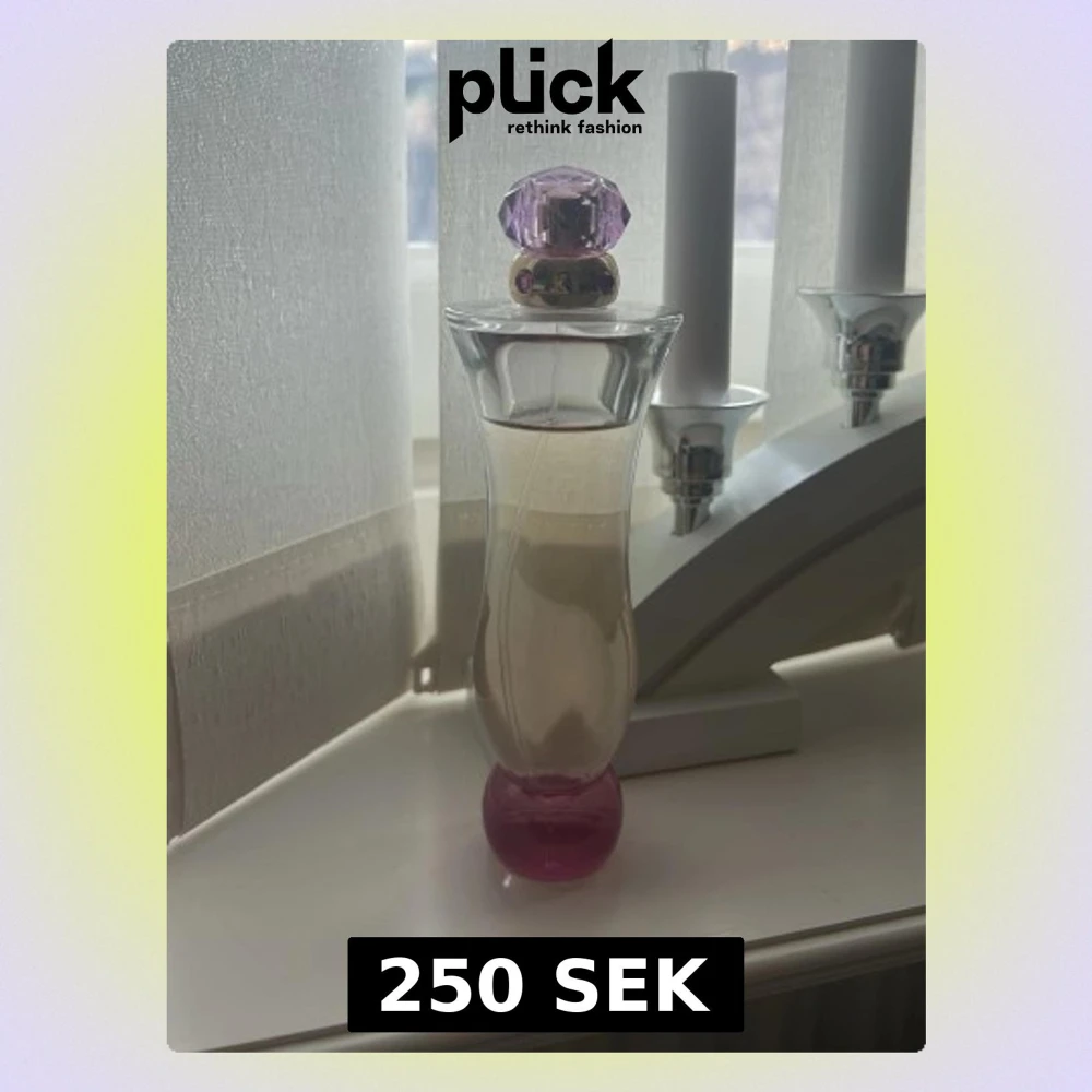 Versace Eau de Parfum, 50ml. Snygg flaska med lila detaljer, perfekt för dig som vill ha en lyxig touch i din samling. Tillverkad i Italien. Knappt använd, skulle gissa på att det är 40+ ml kvar