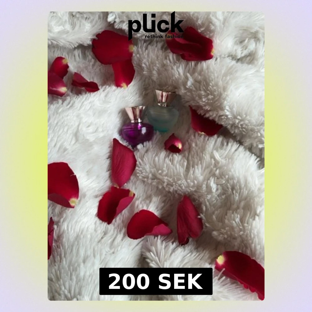 Två små parfymflaskor, en lila och en ljusblå, med eleganta roséguldfärgade lock. Flaskorna har rundad form och är tillverkade i glas. Perfekta att ha i väskan eller på sminkbordet för en lyxig touch. Dofterna är DYLAN PURPLE och den andra är DYLAN TURQUOISE. Om du vill ha en får du det för 100kr men då måste du skriva vilken till mig. 2 för 200kr och 1 för 100kr 💕