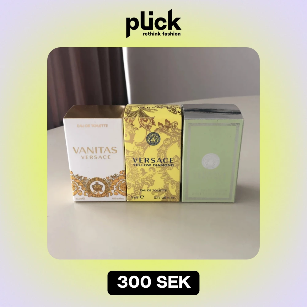 Säljer mina tre Versace parfymer på grund av att de inte faller mig i smaken:) de är helt oanvända, inte ens testade! Tofterna är vanitas, yellow diamond och versense:) köparen står för frakten. De rymmer 5ml förutom vanitas som rymmer 4,5ml:)