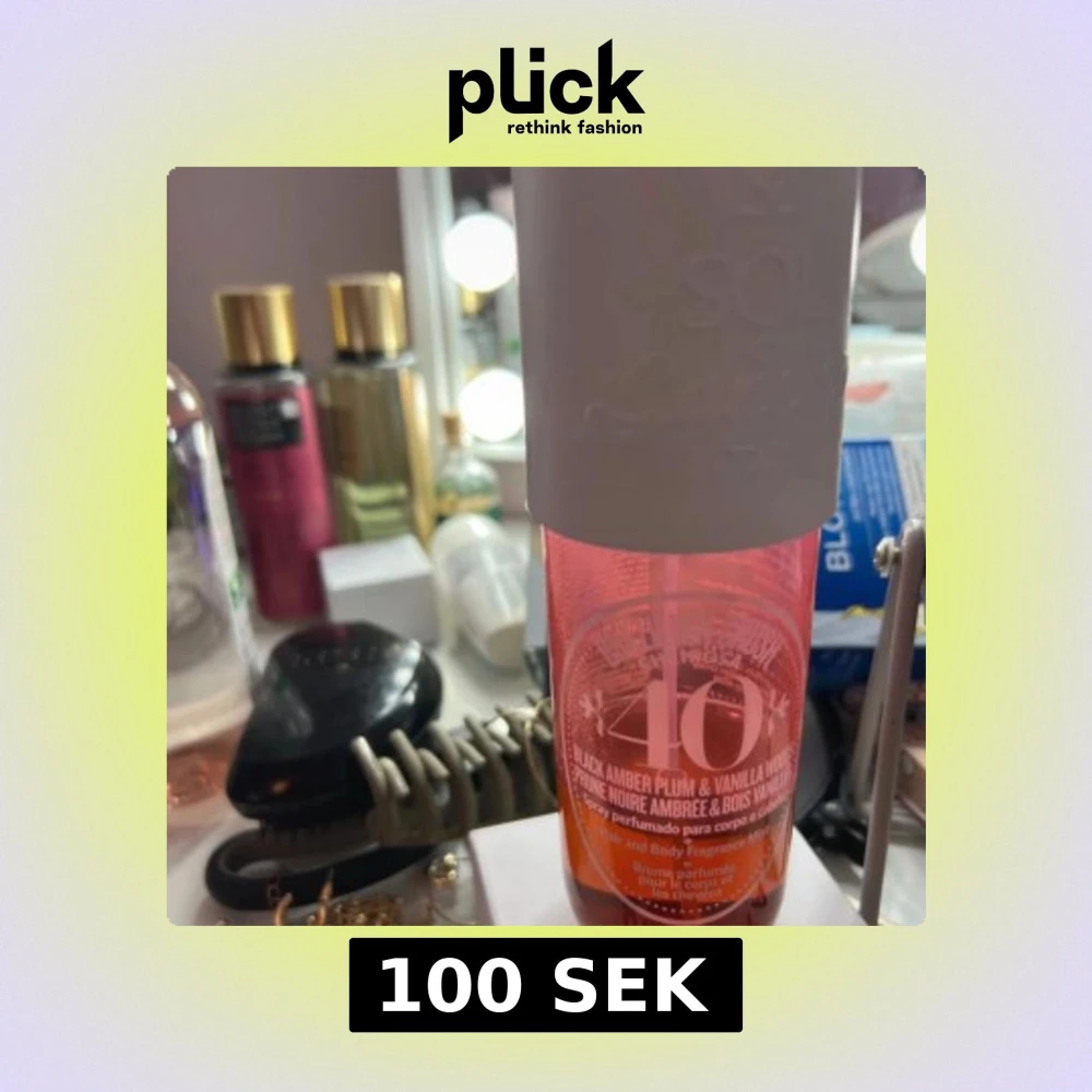 En kroppsspray från Sol de Janeiro med doft av Black Amber Plum och Vanilla Woods. Flaskan är genomskinlig med orange ton och har ett vitt lock med präglad logotyp. Perfekt för dig som älskar söta och varma dofter.