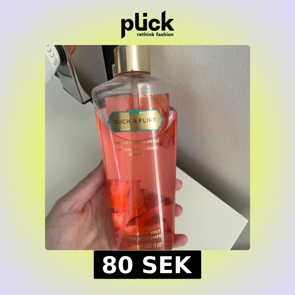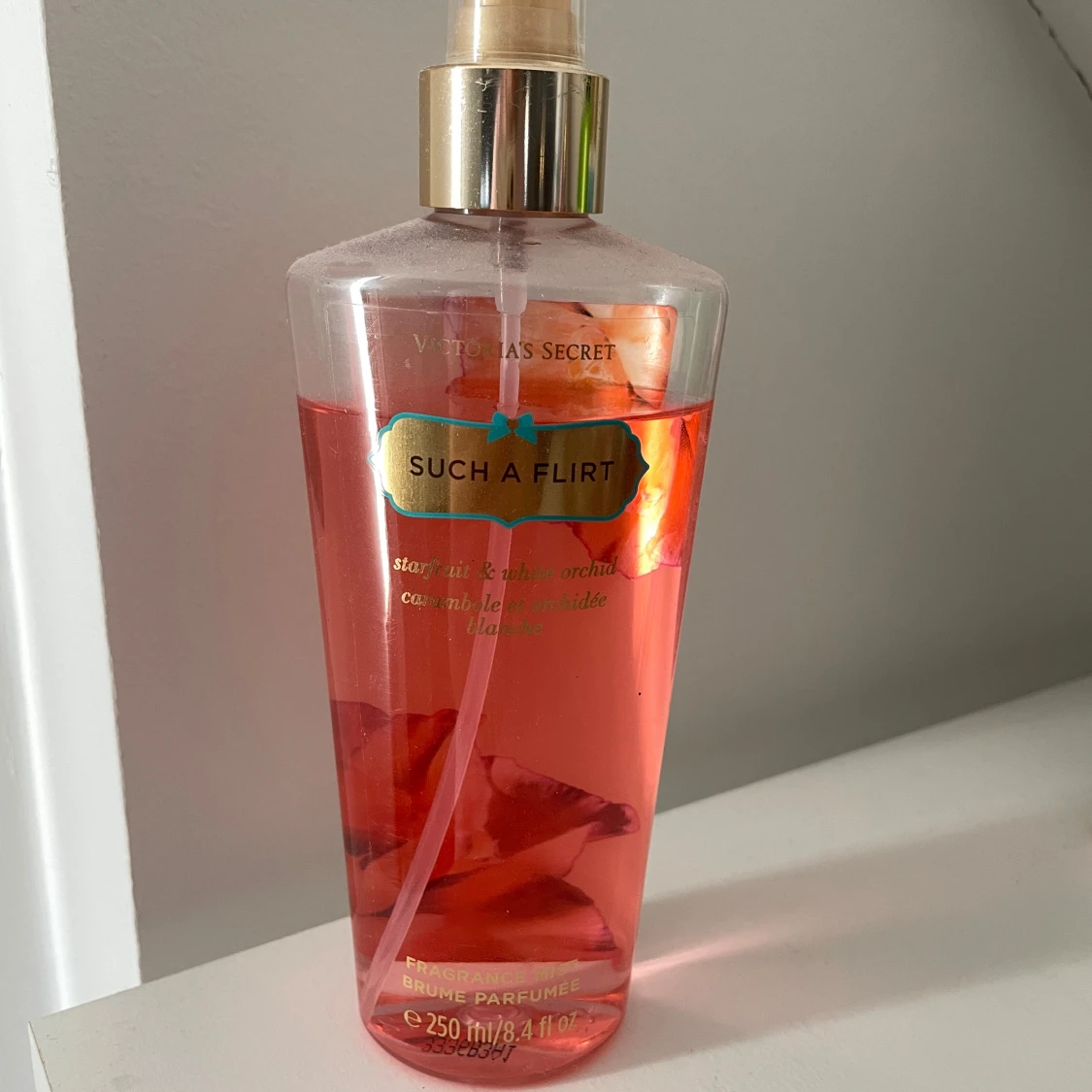 Fräsch och fruktig body mist från Victoria's Secret i doften Such A Flirt. Kommer i en genomskinlig plastflaska med guldigt spraylock och rosa vätska. Rymmer 250 ml. Mer än hälften kvar,