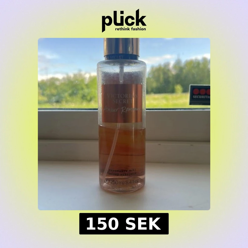 Denn parfym har en god nästan lite vanilj doft. Den är använd några gånger och har blivit lite ”skrynklig” i plasten där bak, den har förvarats i en låda och alldrig vistas i solljus. ☺️🧡