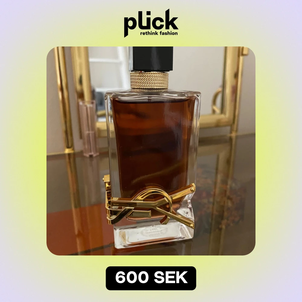 Säljer en elegant parfymflaska från Yves Saint Laurent. Flaskan har en fyrkantig form med en mörk vätska inuti och en stilren svart kork. Den är dekorerad med en lyxig gulddetalj som ger en exklusiv känsla. Perfekt för den som vill ha en doft med stil och klass. Parfymen är knappt använd bara 1-2 gånger! Det enda är att jag råkat tappa den så märket har ramlat av. Men innehållet är det samma! Den är 90ml brukar kosta annars 1500kr!