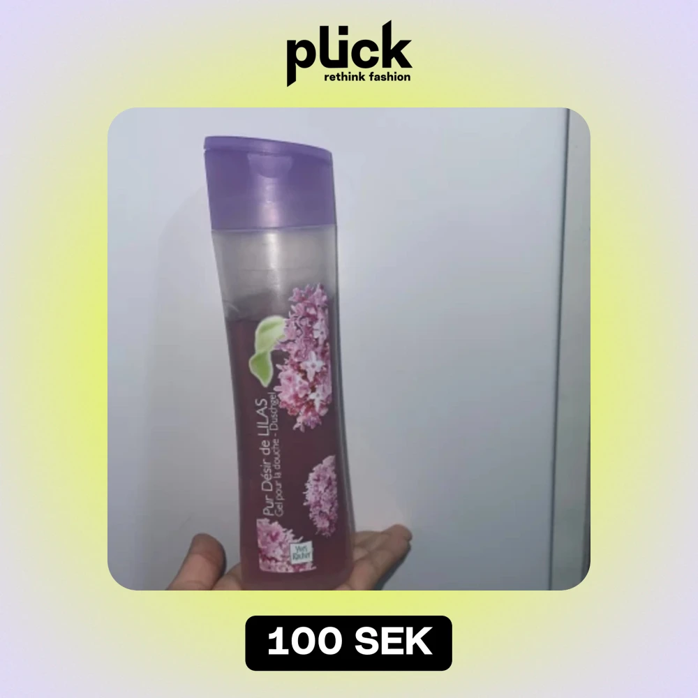 Säljer en härlig duschgel från Yves Rocher med doft av syrén. Flaskan är genomskinlig med lila detaljer och ett vackert blommönster. Den innehåller 200 ml och har en praktisk flip-top-kork. Perfekt för en fräsch och blommig duschupplevelse! orginal pris: ca 315kr