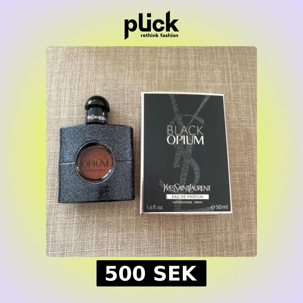 Black Opium Eau de Parfum från Yves Saint Laurent i en snygg svart glittrig flaska med rund detalj i mitten. Doften är ikonisk och flaskan känns lyxig och modern. 50 ml köpt i kicks för 1069 kr helt ny bara öppnad förpackning