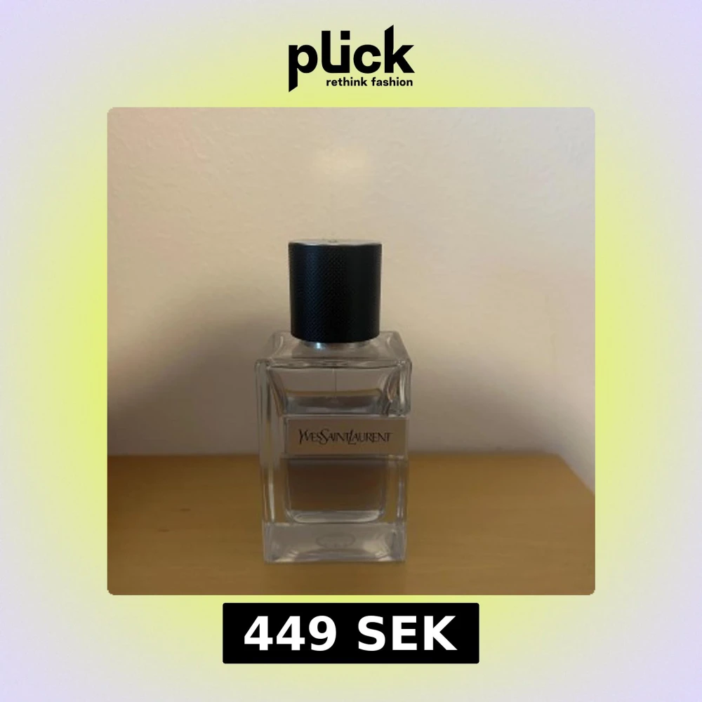 Snygg parfym från Yves Saint Laurent i en stilren, fyrkantig glasflaska med svart, räfflad kork. Flaskan är transparent och visar den ljusa vätskan inuti. Märkets logga sitter på en metallplatta framtill. Perfekt för dig som gillar exklusiva dofter. KÖP ELLER BYT!