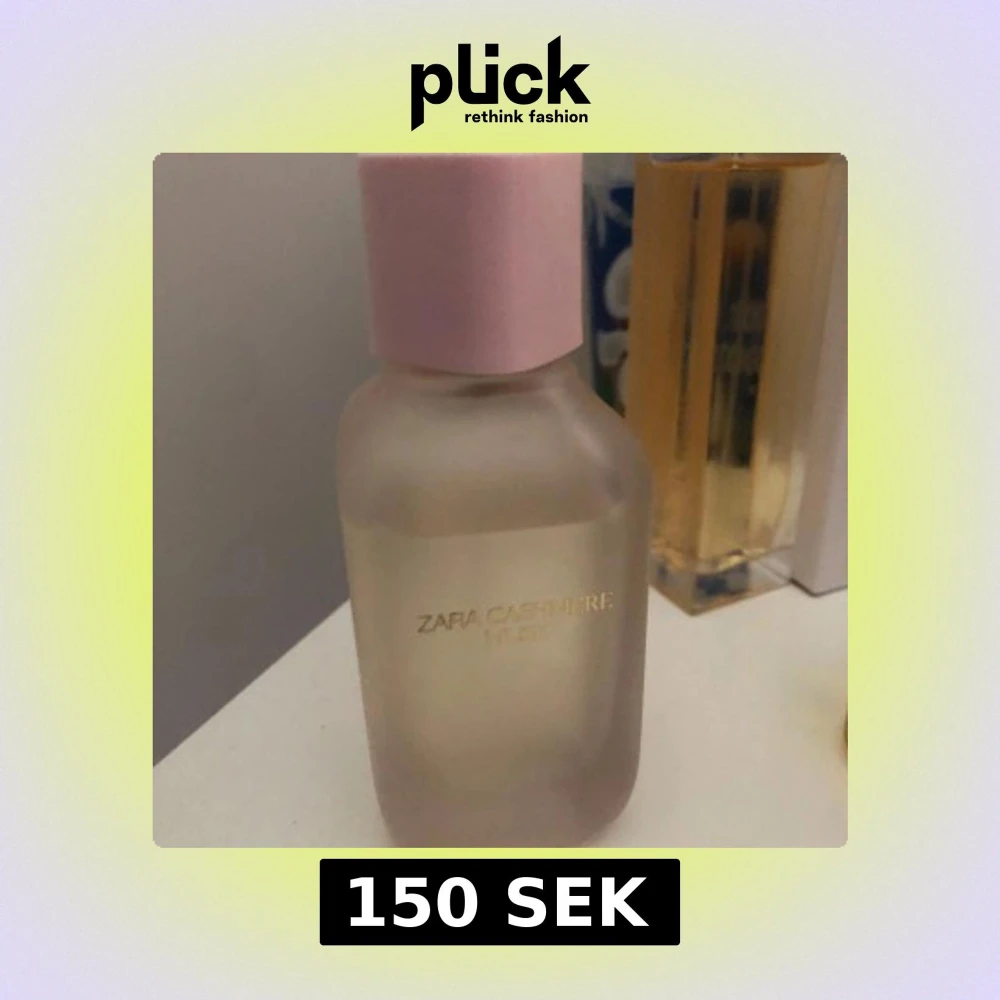 Zara Cashmere Rose parfym i en frostad glasflaska med mjuka former och en ljusrosa kork. Flaskan har en stilren design med guldtext på framsidan. Perfekt för dig som gillar eleganta och feminina dofter. 100ml