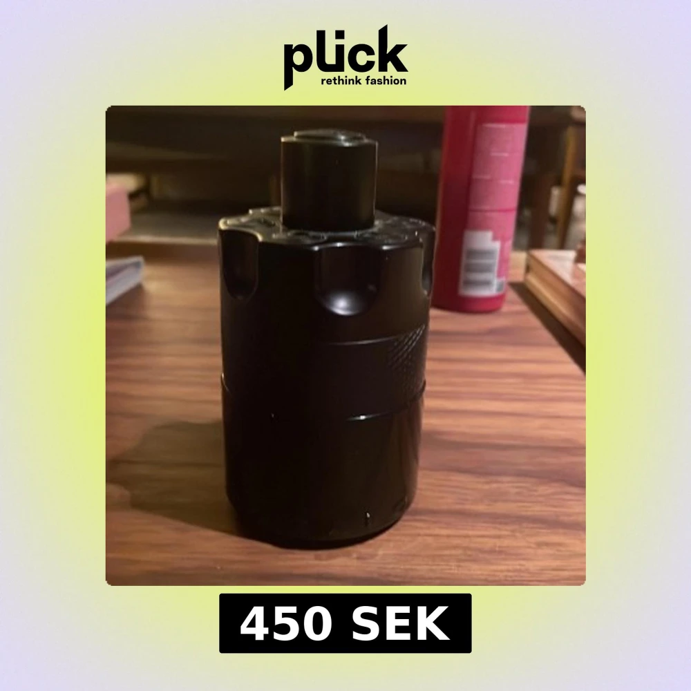 Elegant svart parfymflaska med en stilren och modern design. Flaskan har en rund form och en slät yta, vilket ger den ett sofistikerat utseende. Perfekt för den som söker en tidlös och klassisk doftupplevelse.