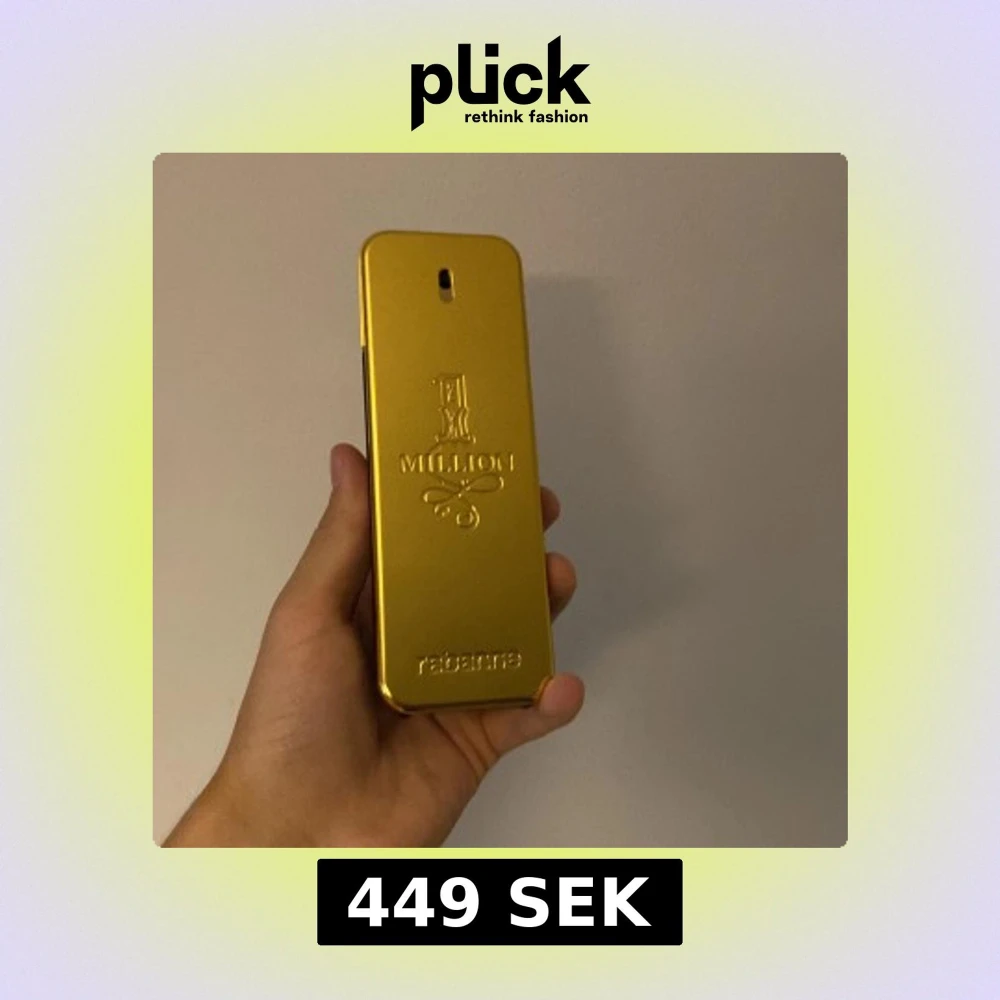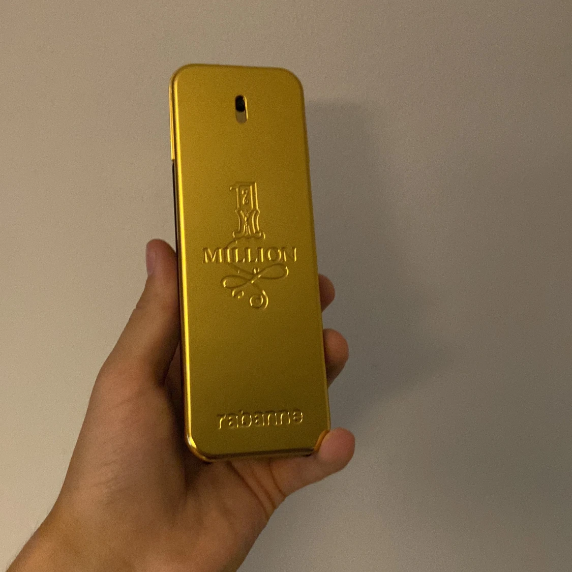 1 Million Eau de Toilette från Paco Rabanne i en ikonisk guld- och svartfärgad flaska som liknar en guldtacka. Flaskan rymmer 100 ml och har en stilren, rektangulär form med metallisk finish och präglad logga framtill. Skulle säga att de är 95% parfym kvar. Det är bara att höra av sig vid frågor eller funderingar 😄