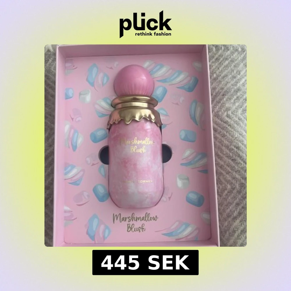 Supergullig parfymflaska i rosa och guld med rund kork och glassig finish. Marshmallow Blush doftar sött och lekfullt, perfekt för dig som älskar pastell och marshmallows. Flaskan rymmer 100ml och är en riktig eye-catcher på sminkbordet. Helt ny köpt för 3 dagar sen 100ml🥰