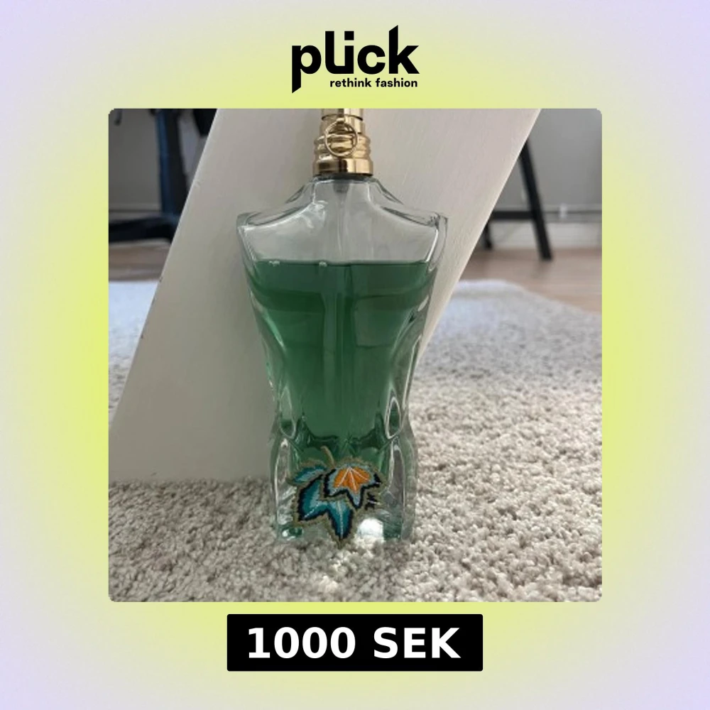 Säljer en Jean Paul Gaultier Le Beau Paradise Garden. Flaskan har en unik design i form av en manlig torso med grön vätska och ett dekorativt mönster. Förpackningen är grön med färgglada drakar och blommor. Innehåller 125 ml. Kanske 105ml kvar. Köpt på kicks för 1435kr. Skriv vid intresse😊