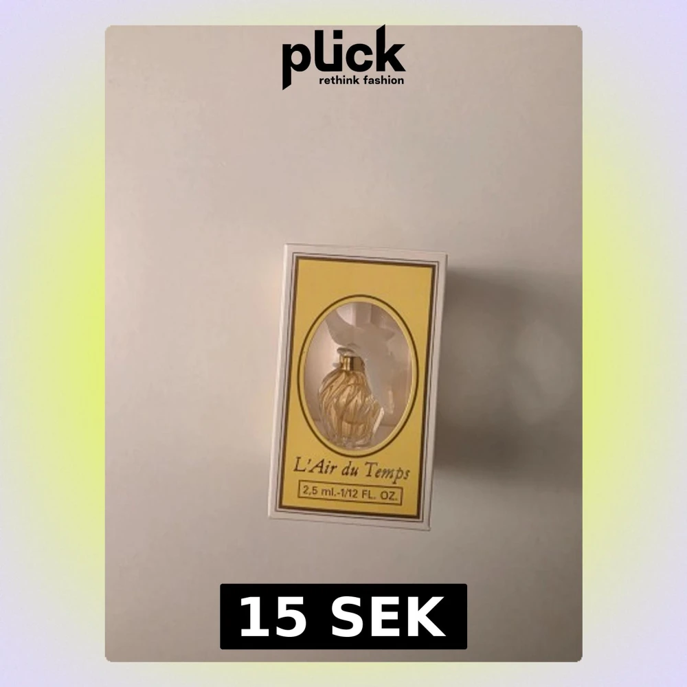 Liten och elegant miniatyr av L'Air du Temps från Nina Ricci. Flaskan är i klar glas med gulddetaljer och har en unik, snirklig form inspirerad av Lalique-kristall. Förpackningen är gul och vit med klassisk design. Innehåller 2,5 ml parfym.
