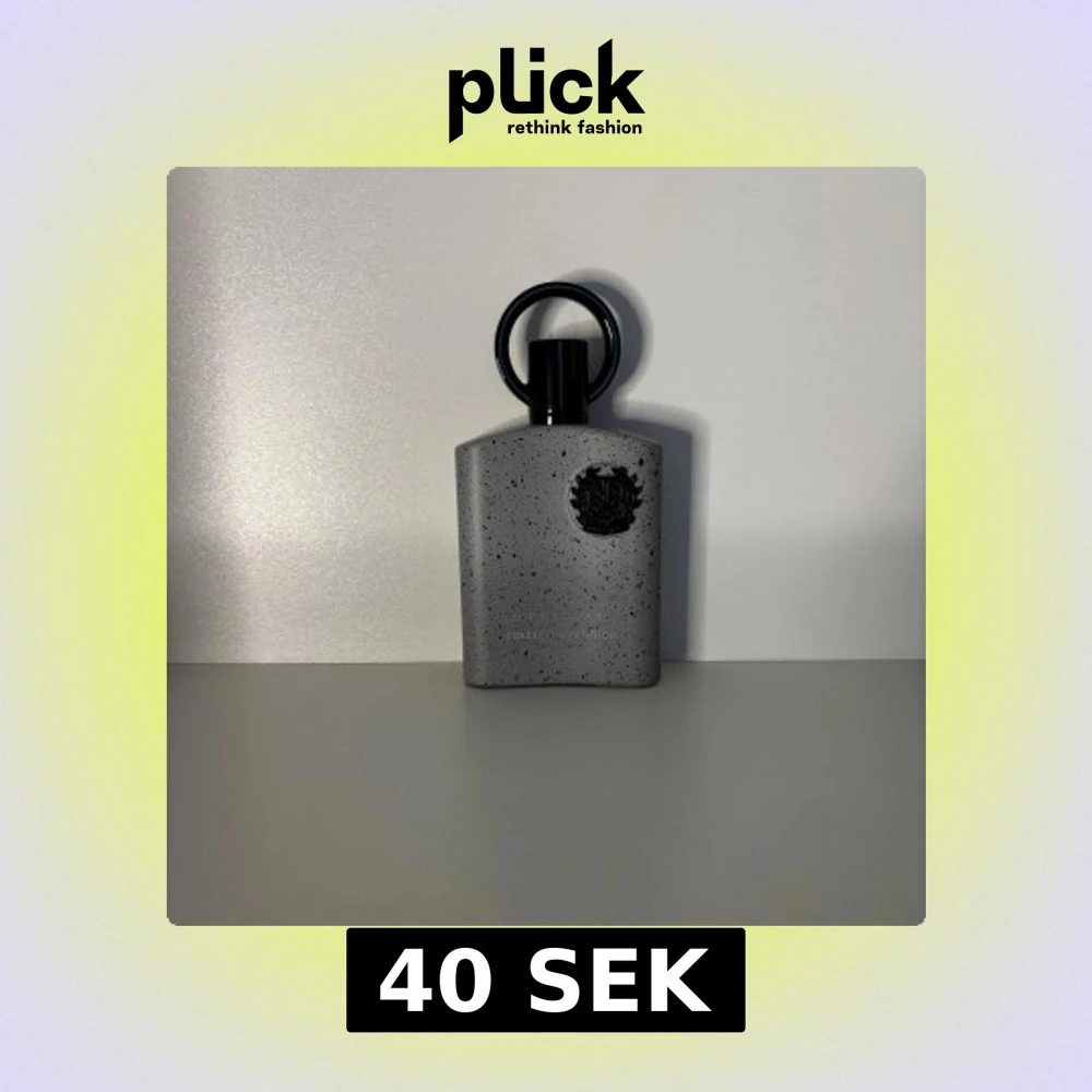 Snygg parfymflaska i grått med svarta prickar och ett svart emblem framtill. Flaskan har en unik, rundad svart kork och modern design. Limited edition-etikett syns på framsidan. Perfekt för dig som gillar stilrena detaljer.