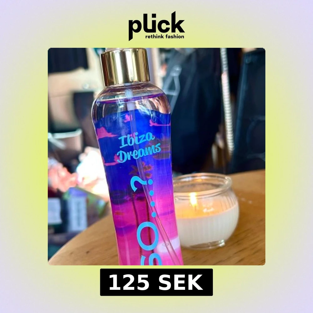 So…? Body Mist ”Ibiza Dreams”. 200 ml. Oanvänd. ”Ibiza Dreams” är en fruktig och blommig doft, utformad för att framkalla känslan av sommarfester och solnedgångar. Dess toppnoter inkluderar rött äpple, hallon och päron, med hjärtnoter av viol, pion och orkidé, och basnoter av sandelträ och mysk.