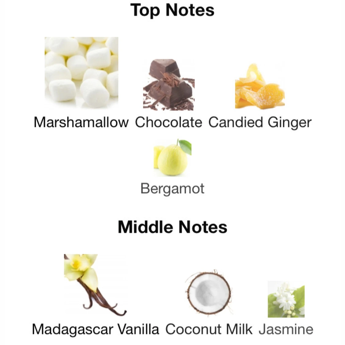 En lyxig body mist med en söt och lockande doftprofil. Toppnoterna inkluderar marshmallow, choklad, kanderad ingefära och bergamott. Mellannoterna bjuder på Madagaskar vanilj, kokosmjölk och jasmin.Föredrar tyngre dofter,därför säljer jag.Endast testad.