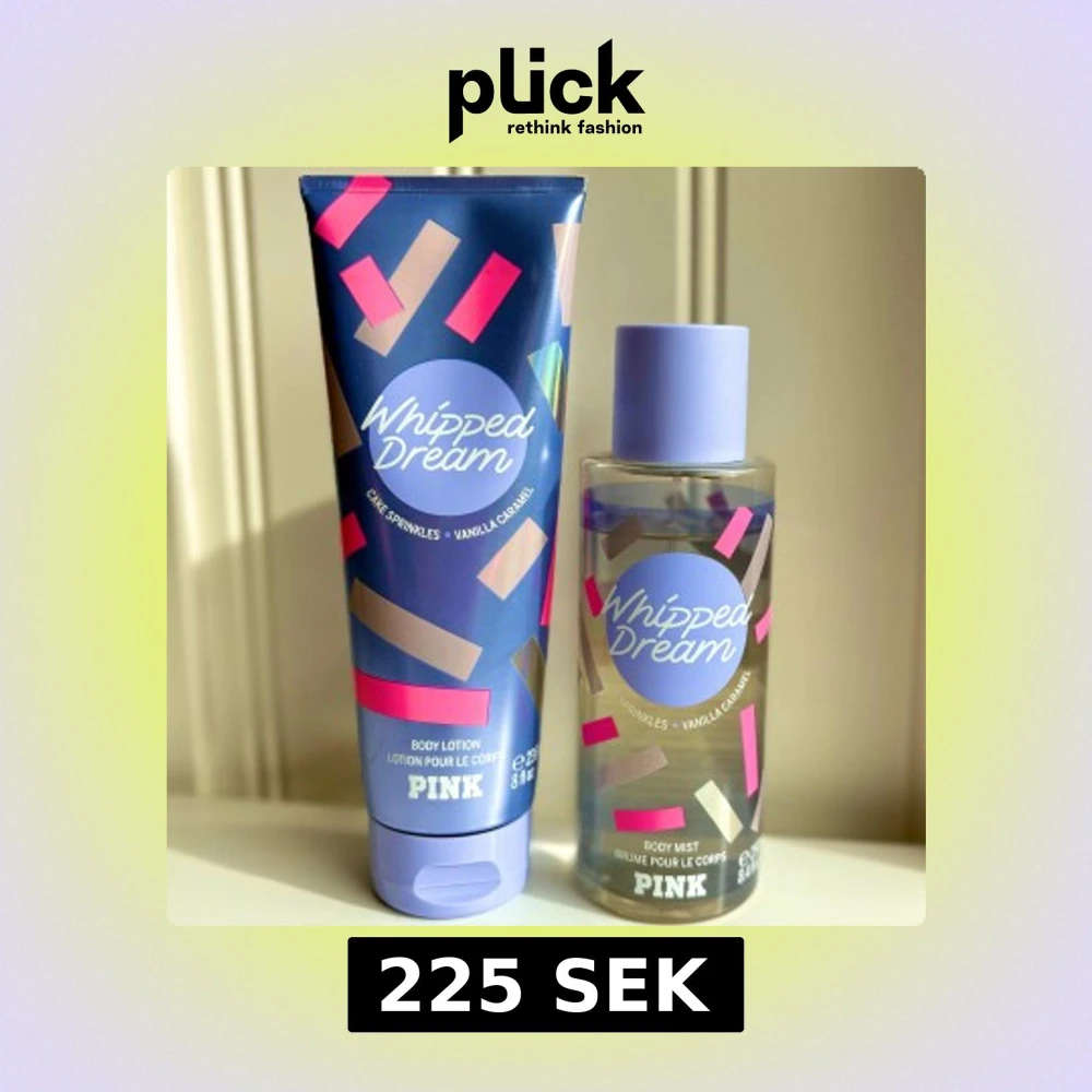 Från Victoria’s Secret PINK. Ett set med Whipped Dream body mist och body lotion. Volym: 236 ml (mist), 236 ml (lotion). Mist använd enligt bild. Lotion enbart testad.