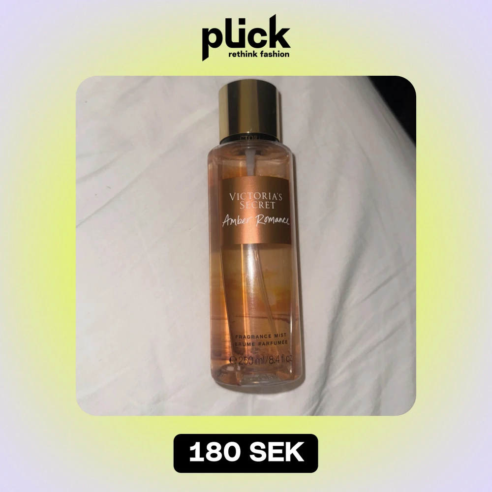 Säljer en Amber Romance Fragrance Mist från Victoria's Secret. Passar både till vardags och speciella tillfällen. 🧡Har noter av sandelträ, vanilj, socker m.m🧡 Använd några gånger🧡