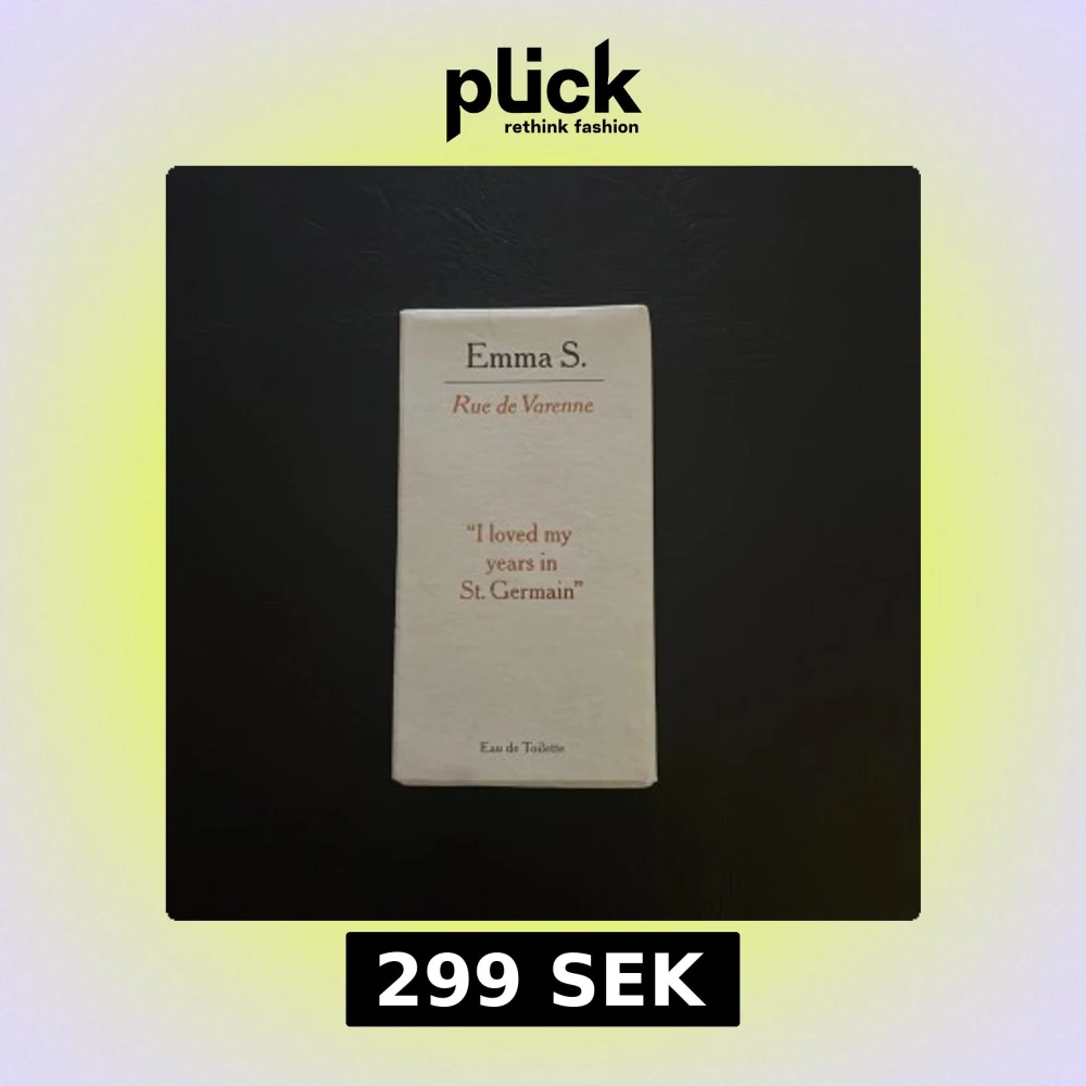 Elegant Eau de Toilette från Emma S. med namnet Rue de Varenne. Flaskan är stilren och transparent med en silverfärgad kork. Citatet 'I loved my years in St. Germain' pryder framsidan, vilket ger en känsla av nostalgi och elegans.