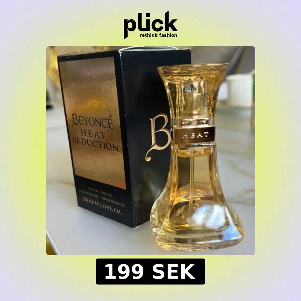 Säljer en elegant flaska av Beyoncé Heat Seduction Eau de Toilette. Flaskan har en stilren design med en gyllene ton och en smal midja. Förpackningen är svart med gyllene detaljer och rymmer 30 ml av denna förföriska doft.