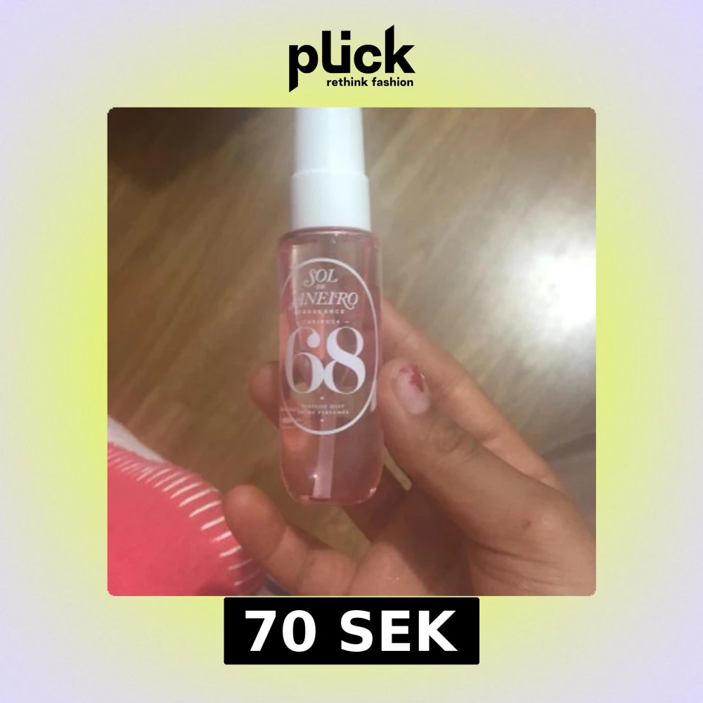 En söt och fräsch parfymmist från Sol de Janeiro i doften Cheirosa 68. Flaskan är liten och genomskinlig med rosa vätska och vit spraykork. Perfekt att ha med i väskan för en snabb uppfräschning.