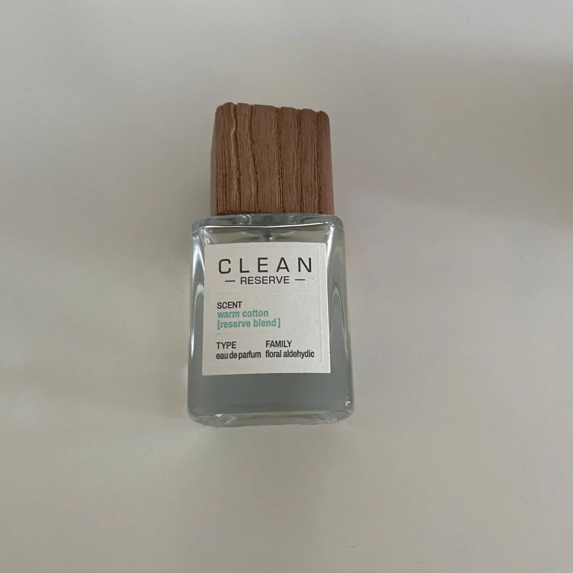 Fräsch parfym från CLEAN Reserve i doften Warm Cotton [reserve blend]. Flaskan är fyrkantig i genomskinligt glas med en snygg träkork som ger en naturlig känsla. Eau de parfum med floral aldehydisk karaktär. Perfekt för dig som gillar rena och mjuka dofter. Parfymen är andvänd vid få tillfällen