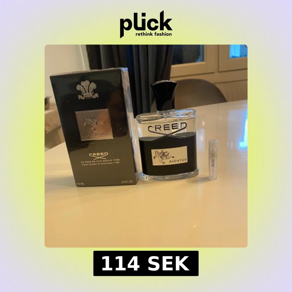 Exklusiv Creed Aventus parfym i en elegant glasflaska med svart och silver detaljer. Förpackningen är stilren och lyxig, perfekt för den som söker en sofistikerad doftupplevelse. Flaskan rymmer 3 ml av denna ikoniska doft.