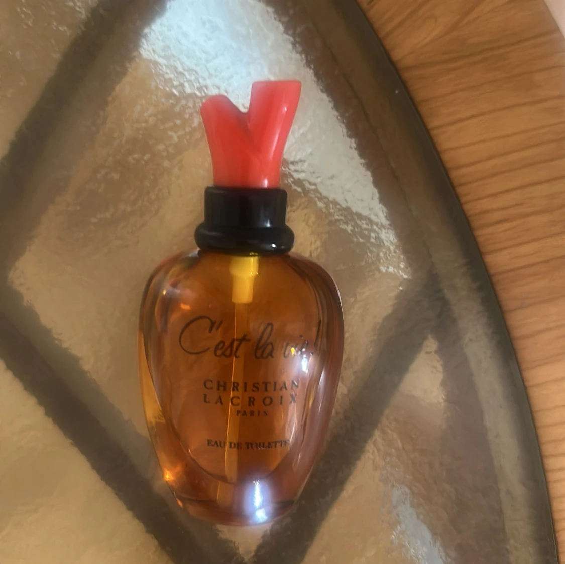 En elegant parfymflaska i hjärtformad flaska Sparsamt använd. 50 ml Eau De Toilette. Vintage från 1990. Märkt med 'C'est la Vie' och 'Christian Lacroix Paris'.