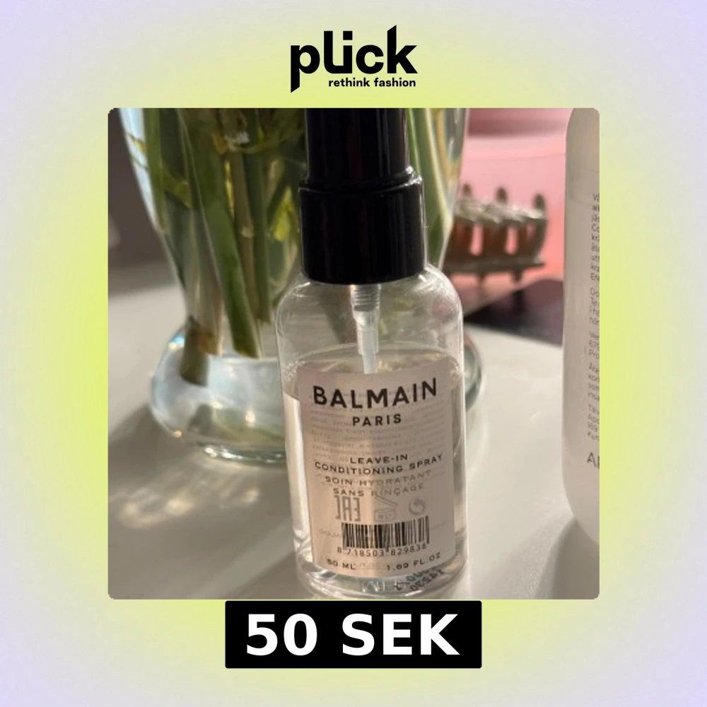 Säljer en Leave-in Conditioning Spray från Balmain Paris. Flaskan är genomskinlig med svart spraypump och etikett i vitt och svart. Perfekt för att återfukta och vårda håret utan att skölja ur. En lyxig hårvårdsprodukt för daglig användning🥰 Doftar super fräscht , typ som nytvättade kläder🌸