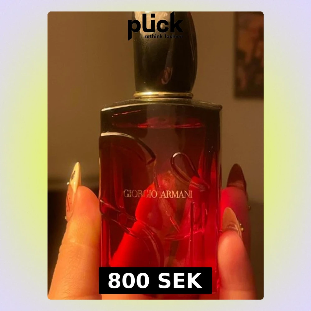 Elegant parfym från Giorgio Armani i en djup röd glasflaska med dekorativa mönster. Flaskan har en svart och guld kork som ger en lyxig känsla. Volymen är 50 ml och flaskan har tydlig märkning undertill. Perfekt för dig som gillar exklusiva dofter.
