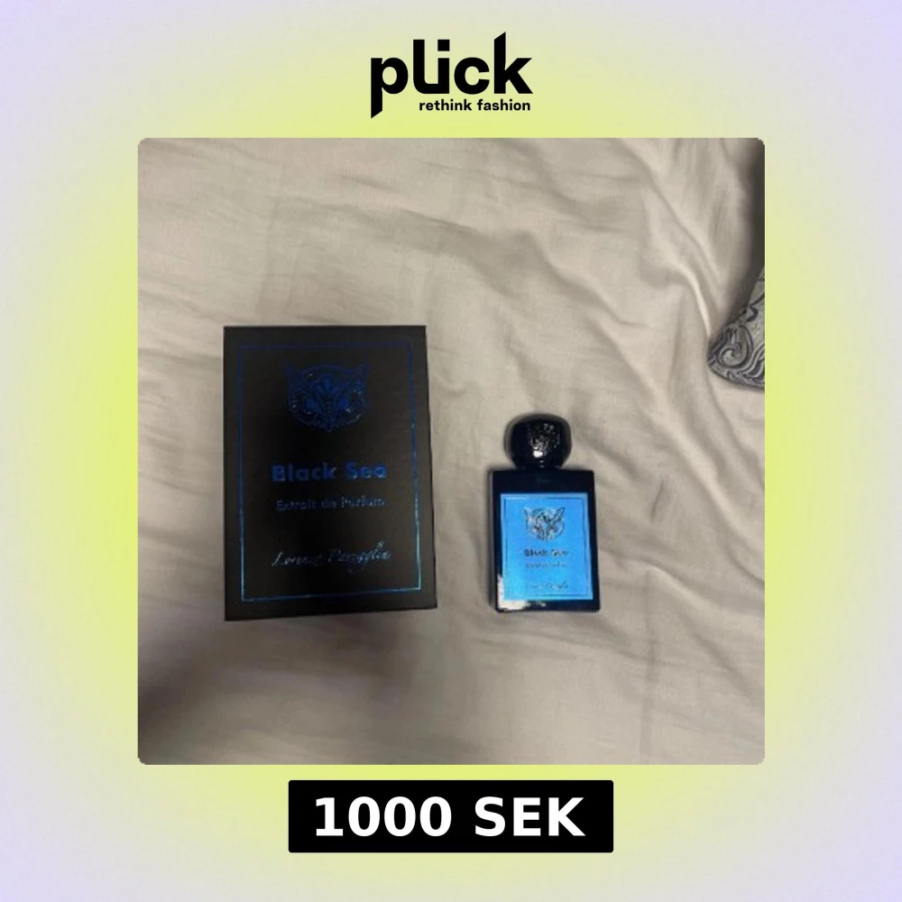 Säljer en exklusiv parfym, Black Sea Extrait de Parfum från Lorenzo Pazzaglia. Flaskan är svart med en glansig blå etikett och har ett snyggt ugglemotiv. Kommer i matchande svart och blå kartong. Perfekt för dig som gillar unika och djupa dofter. 50ml flaska med ca 43ml kvar