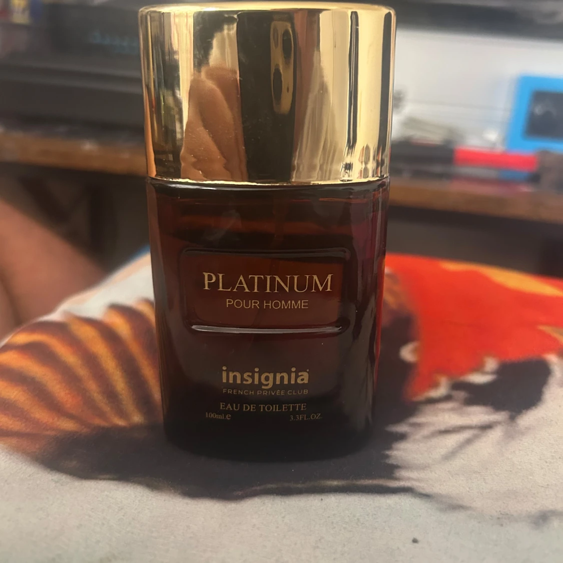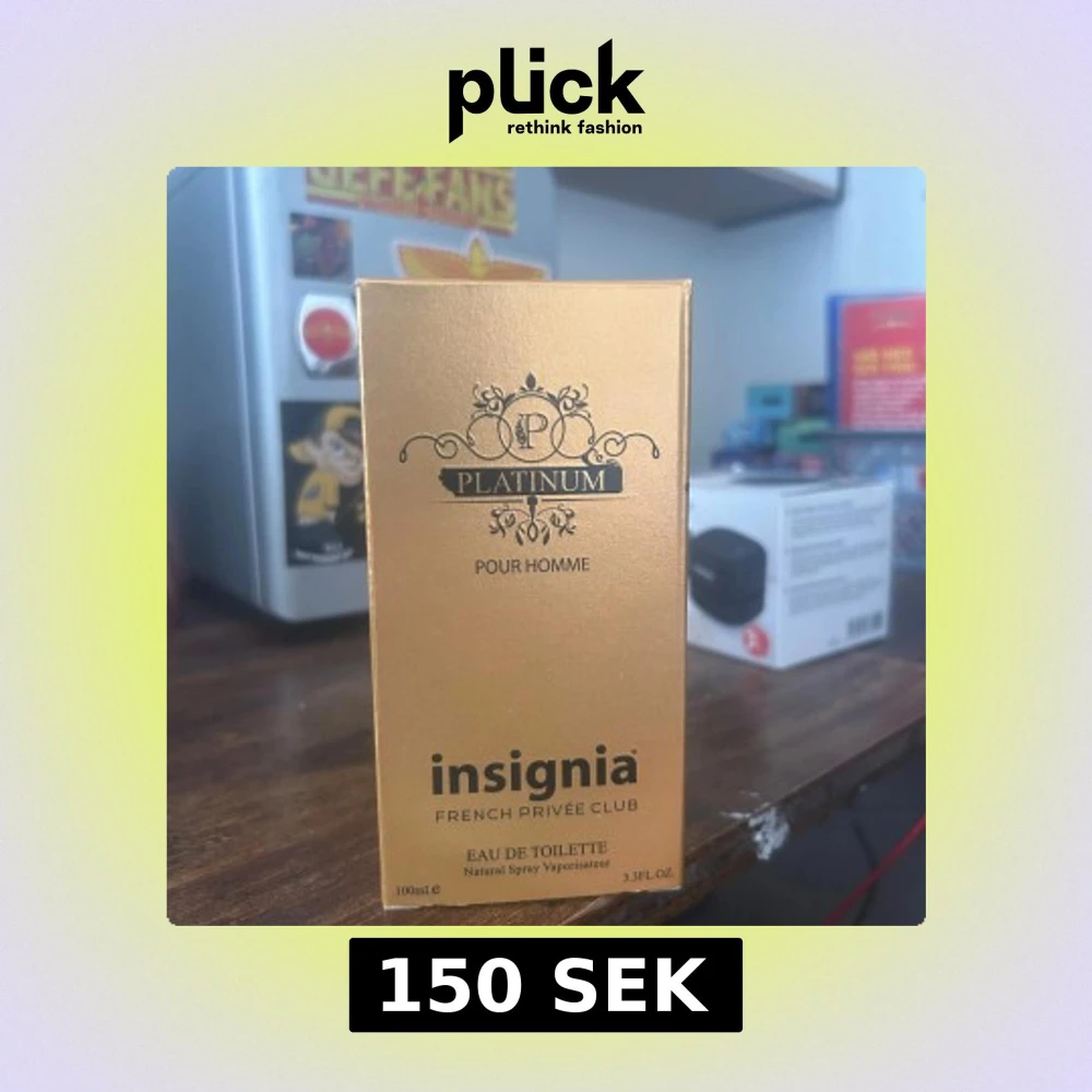 Insignia Platinum Pour Homme Eau de Toilette i en lyxig mörkbrun glasflaska med guldfärgat lock. Doften är maskulin och exklusiv, perfekt för dig som vill sticka ut. Flaskan rymmer ca 70-80 ml kvar i flaskan och kommer i en snygg guldig kartong.