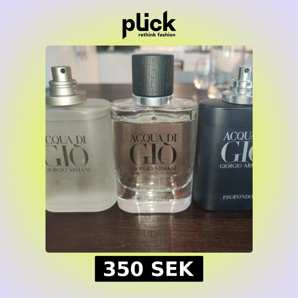 Säljer mina äkta Armani parfymer då de bara ligger hemma utan att användas. 1. Acqua di Gio EdT 70 av 75 ml kvar 250 kr 2. Acqua di Gio EdP 70 av 75 ml kvar 350 kr 3. Acqua di Gio EdP 65 av 75 ml kvar 350 kr Ta alla för 700, kan skickas mot betalning. Giorgio Armani Emporia Armani Parfym Herr parfym