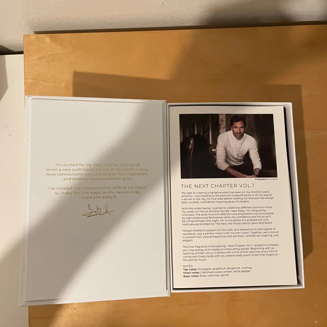 Parfym skapad av Henrik Lundqvist och Morgan Madison. Fräscha noter av ananas, grapefrukt, fikon och bergamott, med hjärtnoter av sandelträ, ambra och vitpeppar. Basnoter: ros, ekmossa och vanilj. Perfekt för dig som vill sticka ut.