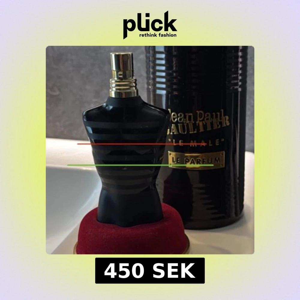 Jean Paul Gaultier Le Male Le Parfum i 75ml flaska. Flaskan har en ikonisk svart kropp med matta och blanka ränder, guldigt spruthuvud och levereras i en svart och guldig metallburk. En maskulin och modern doft med lyxig känsla. Innehåller där den gröna visar, ca 30ml kvar