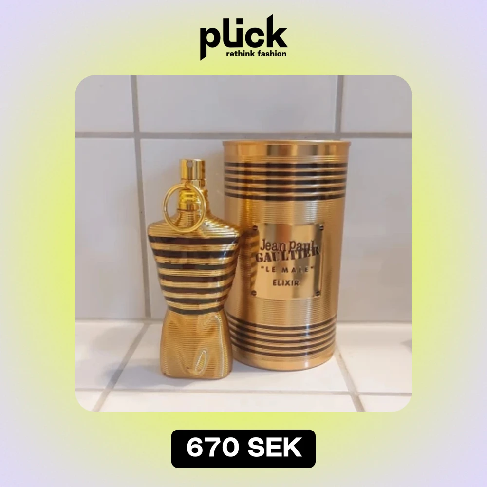 Säljer en lyxig parfymflaska från Jean Paul Gaultier, Le Male Elixir. Flaskan är i en snygg guldig färg med ett randigt mönster som ger en exklusiv känsla. Den kommer i en matchande guldig förpackning som ser ut som en burk. Perfekt för den som vill ha en doft som sticker ut! Ca 60-65 ml kvar.