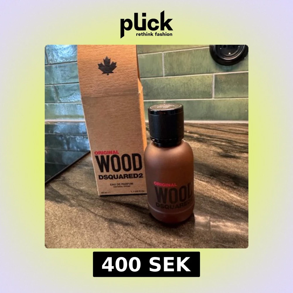 DSQUARED2 Wood Original Eau de Parfum, 50 ml. Flaskan är mattbrun med svart kork och tydlig logga. Kommer i en stilren kartong i naturfärgat papper med svart och röd text. En parfym med träig och fräsch vibe, perfekt för dig som gillar unika dofter.